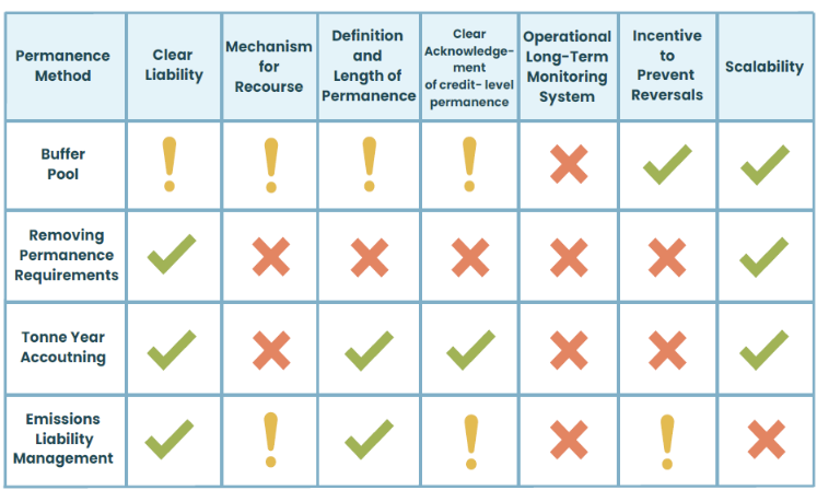 - However, the aforementioned tools do not satisfy all of the requirements introduced in the paper for guaranteeing permanence, namely ‘clear liability, mechanism for recourse, definition and length of permanence, clear acknowledgement of credit-level permanence, incentive to prevent reversal and scalability’.