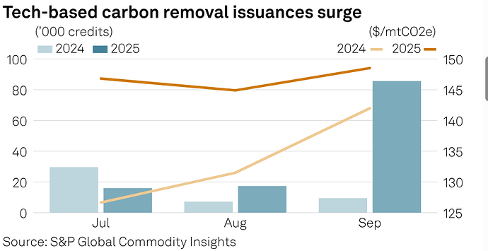 Platts US biochar carbon credit prices rise to $150/mtCO2e.