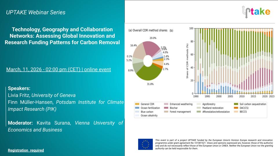 The next webinar on the latest published papers on carbon dioxide removal (CDR) research will focus on the paper ‘Technology, Geography and Collaboration Networks: Assessing Global Innovation and Research Funding Patterns for Carbon Removal’.